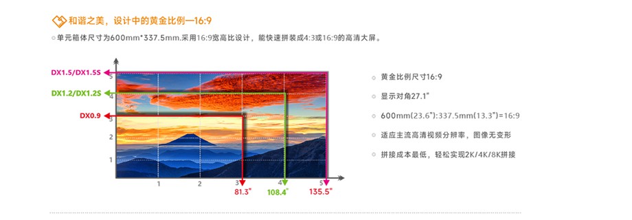 人體工程學設(shè)計,黃金比例16:9;高精度,無縫拼接 ;